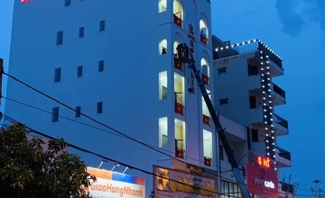 Thi công quảng cáo và trang trí hệ thống hiệu ứng ánh sáng tòa nhà khách sạn Rosa Lie. Địa chỉ: 29 Phạm Văn Đồng, TP Đồng Hới, tỉnh Quảng Bình.